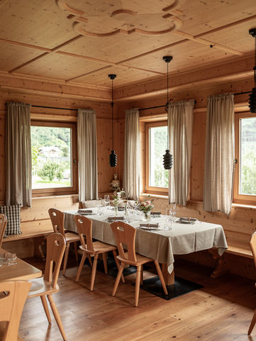 Ciò che si apprende da piccoli permane nel profondo dell'anima. Come la convivialità che ci portiamo da casa: mangiare e brindare, parlare e scherzare. Così è a casa, alla fattoria Tschenglserhof dei genitori di Christian, e così è ora al Zwickmairhof, a Merano.